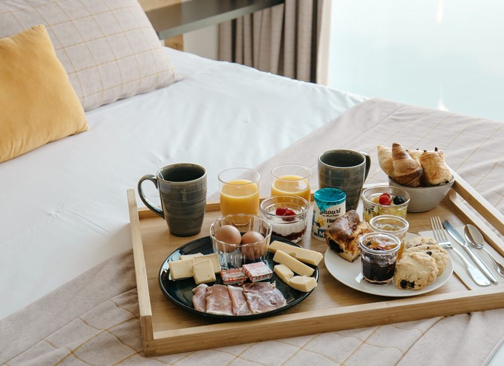 Pour le dîner, vous avez le choix entre profiter de votre chambre grâce à notre formule room-service ou tester une de nos adresses gourmandes, à Perros-Guirec.